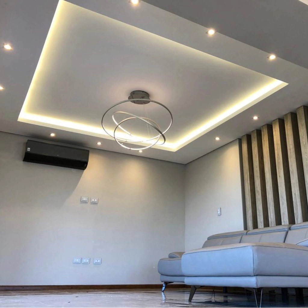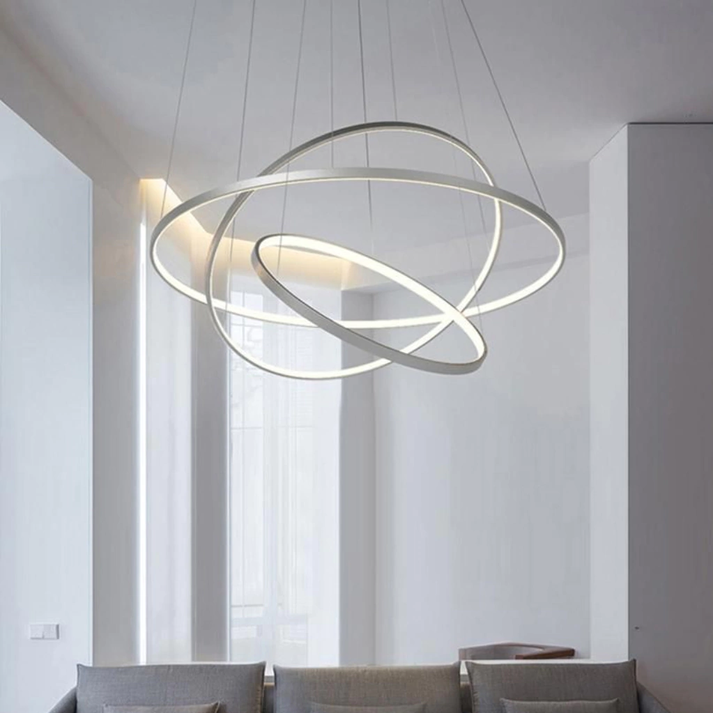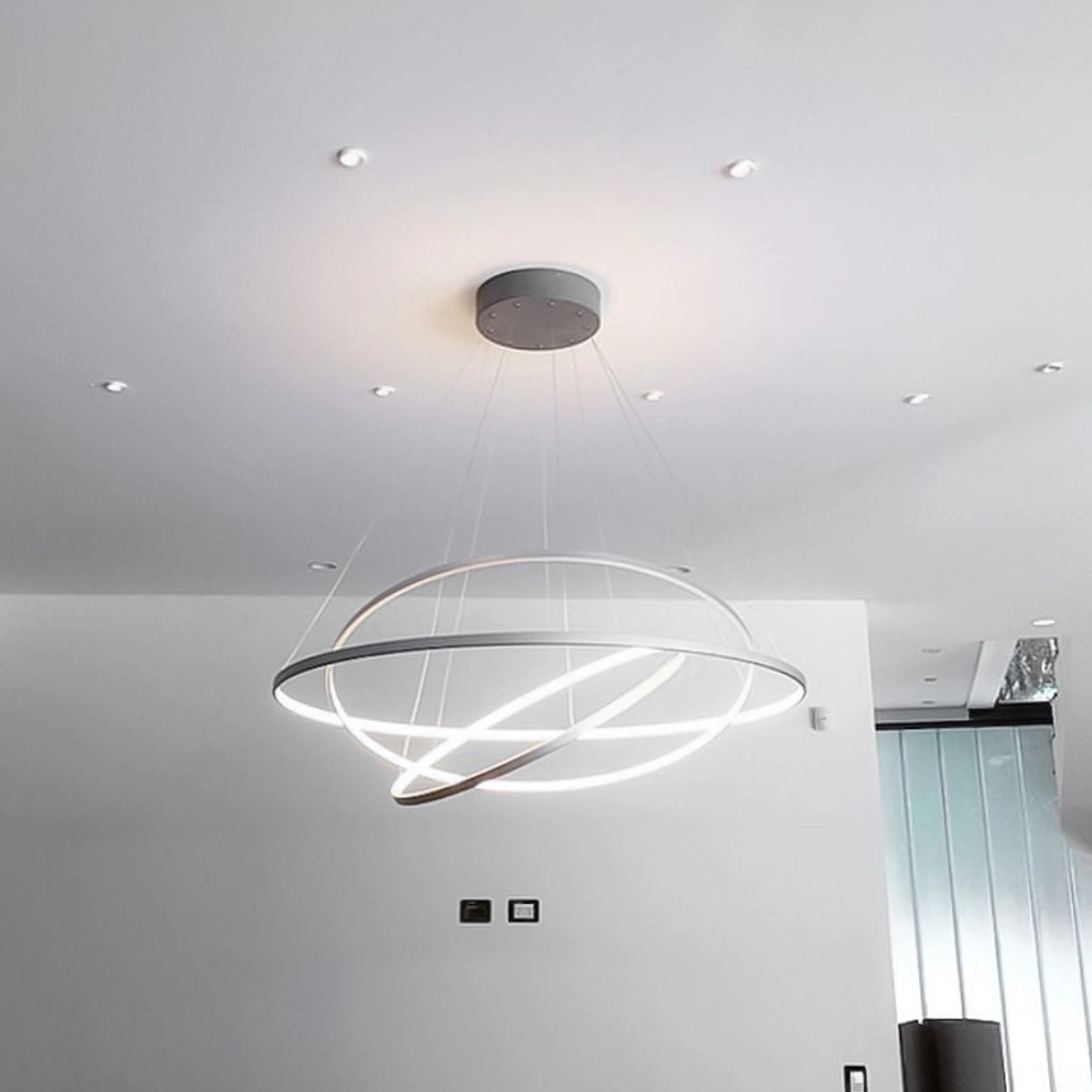 - Colgante formado por aros de LED, de aluminio con luz interna.