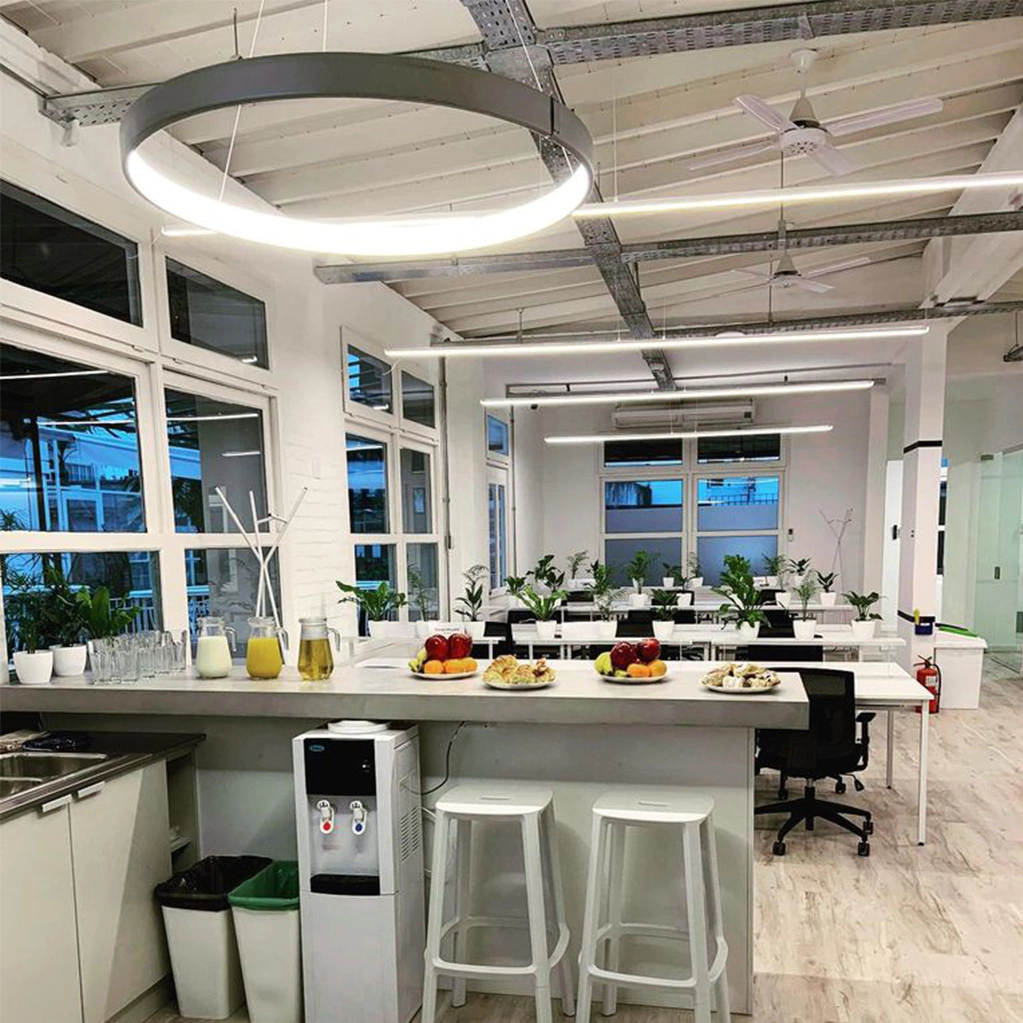 - Colgante tipo aro de LED XL, de aluminio con luz interna.