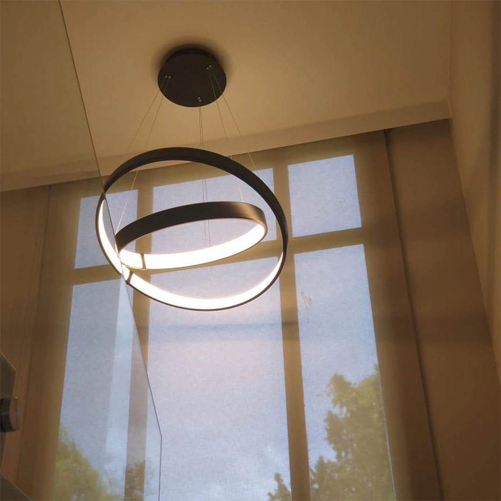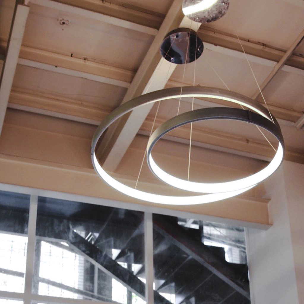 - Colgante formado por aros de LED XL, de aluminio con luz interna.