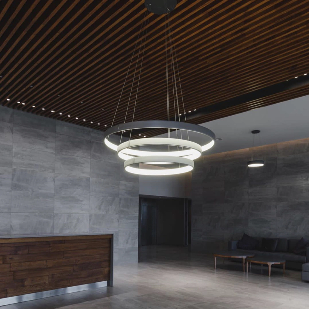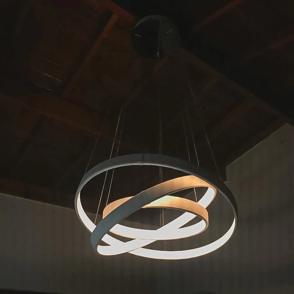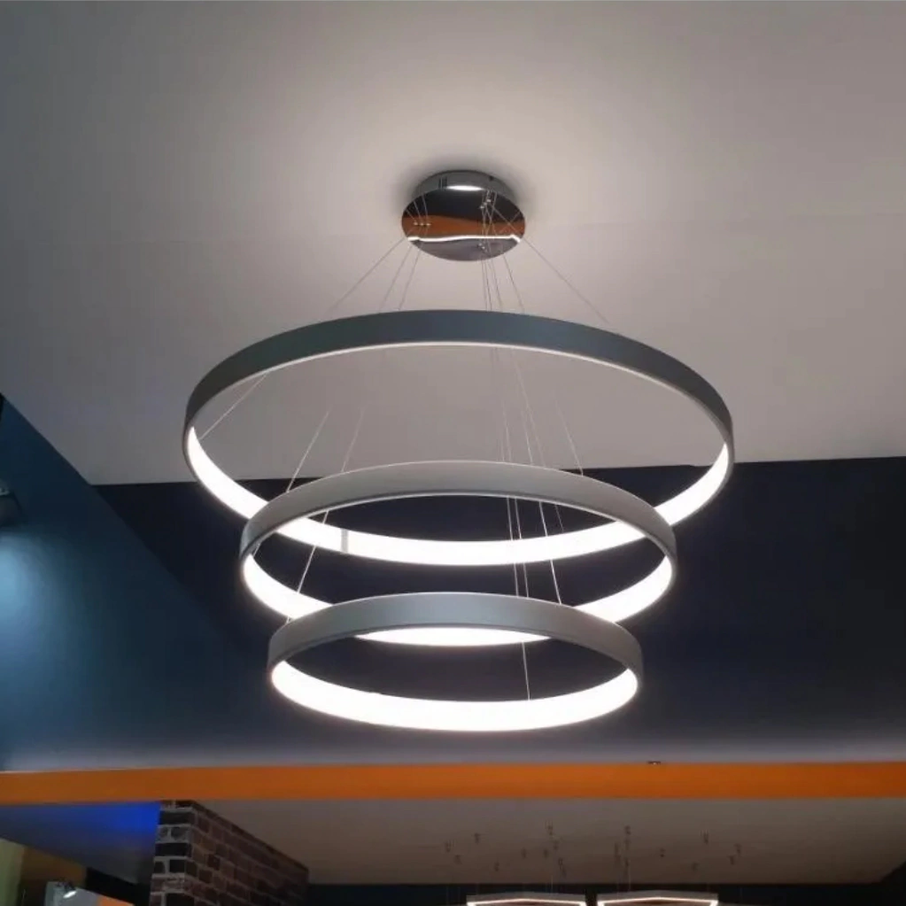 - Colgante formado por aros de LED XL, de aluminio con luz interna.
